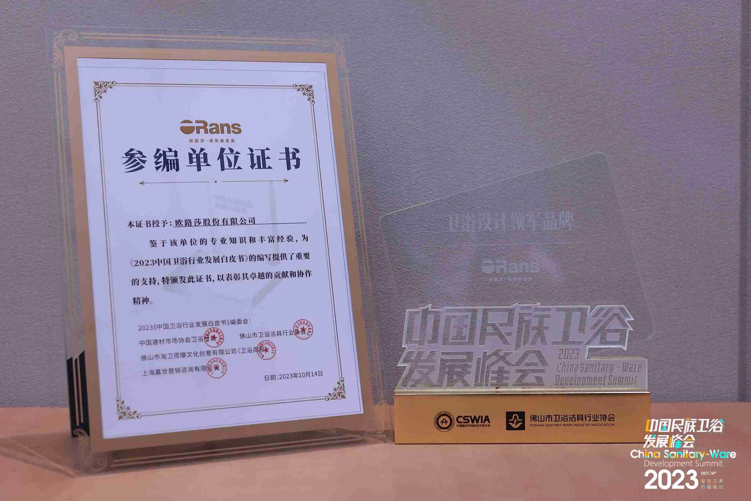 與此同時,歐路莎不光關(guān)注自身發(fā)展,還積極參與推動國內(nèi)衛(wèi)浴行業(yè)的發(fā)展。歐路莎衛(wèi)浴為編寫《2023 中國衛(wèi)浴行業(yè)發(fā)展白皮書》提供了重要支持,并獲得了“參編單位證書”。這一舉措不僅體現(xiàn)了歐路莎衛(wèi)浴的專業(yè)實力,更是對國貨品牌的責(zé)任擔(dān)當(dāng)?shù)目隙ā?/span>